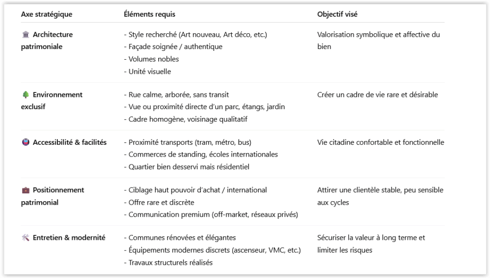 • La clientèle visée est prête à payer un prix premium pour une adresse de référence et un bien unique, ce qui soutient durablement les prix.